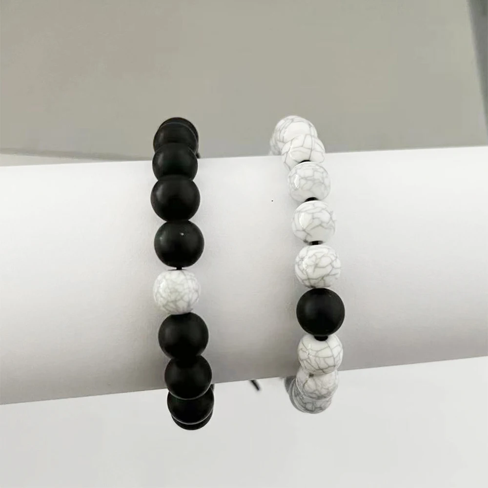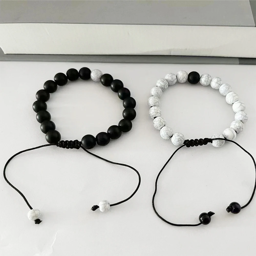 2 Piece Set Of Neutral Bracelets With Natural Energy White Turquoise Black White Matching Bracelets Simple Creative Retro Style