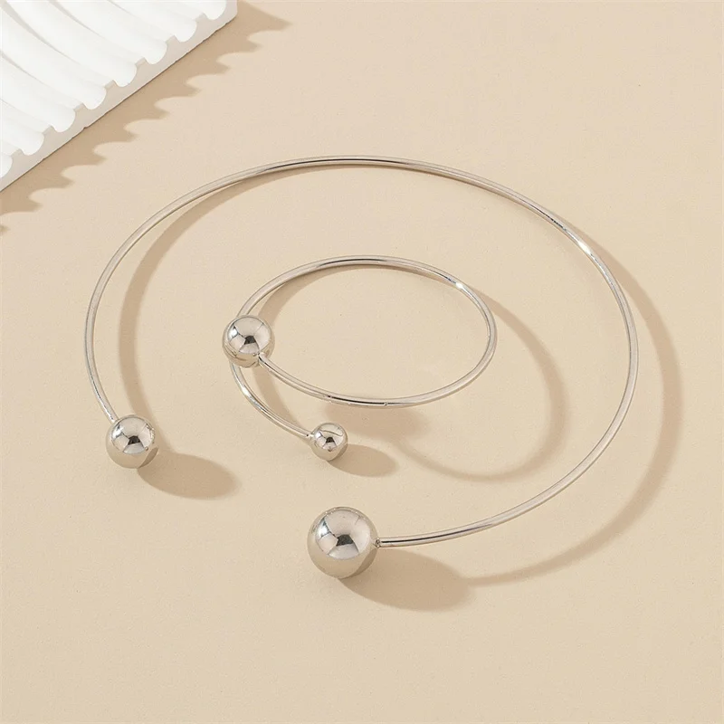 XIALUOKE Geometric Metal Round Ball Torques Choker For Women Europe American Style Personality Cuff Necklace Jewelry Set